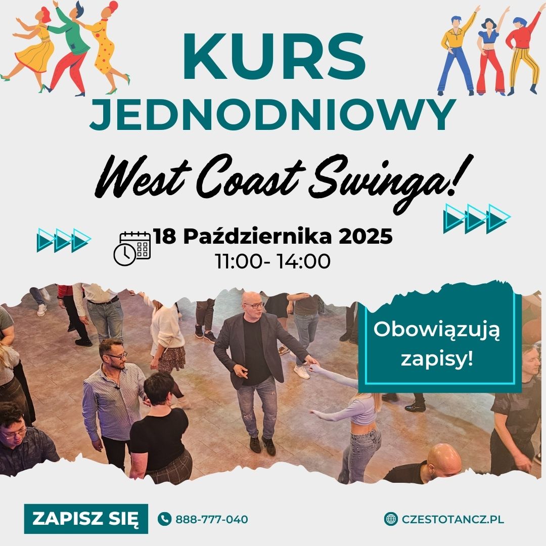 West Coast Swing to nowoczesny taniec, który powstał w Kalifornii i dziś tańczy się go na całym świecie. Pasuje do wielu gatunków muzyki – od popu, przez R&B, aż po bluesa. Daje przestrzeń na kreatywność i pozwala każdemu wnieść do tańca własny styl. Opiera się na subtelnej komunikacji między partnerami, dzięki czemu jest przyjemny i dostępny dla każdego, niezależnie od wieku czy wcześniejszego doświadczenia tanecznego.